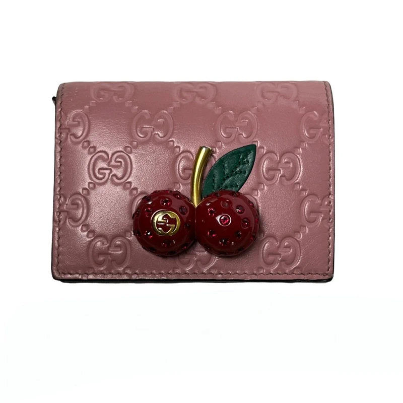Gucci Authentic Cherry Wallet Japan Exclusive Pink GG Marmont Embossed Leather