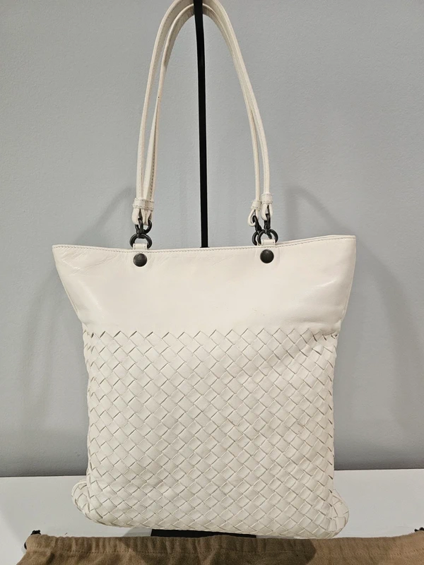 Bottega Veneta Intrecciato Ivory Tote Bag With Dust Bag