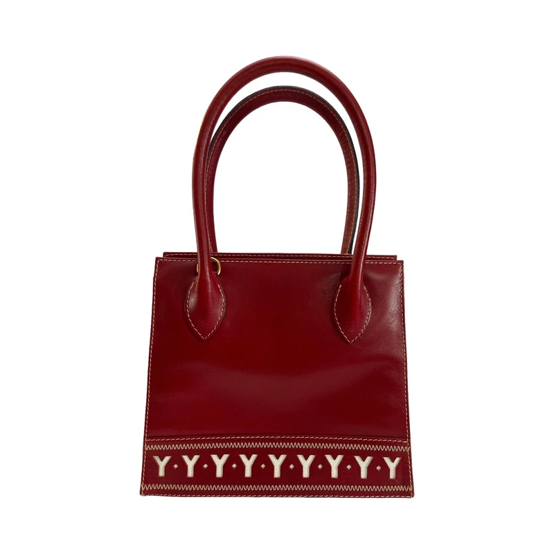 Yves Saint Laurent Red Leather Tote Bag Y Pattern Logo Auth Cert And Strap