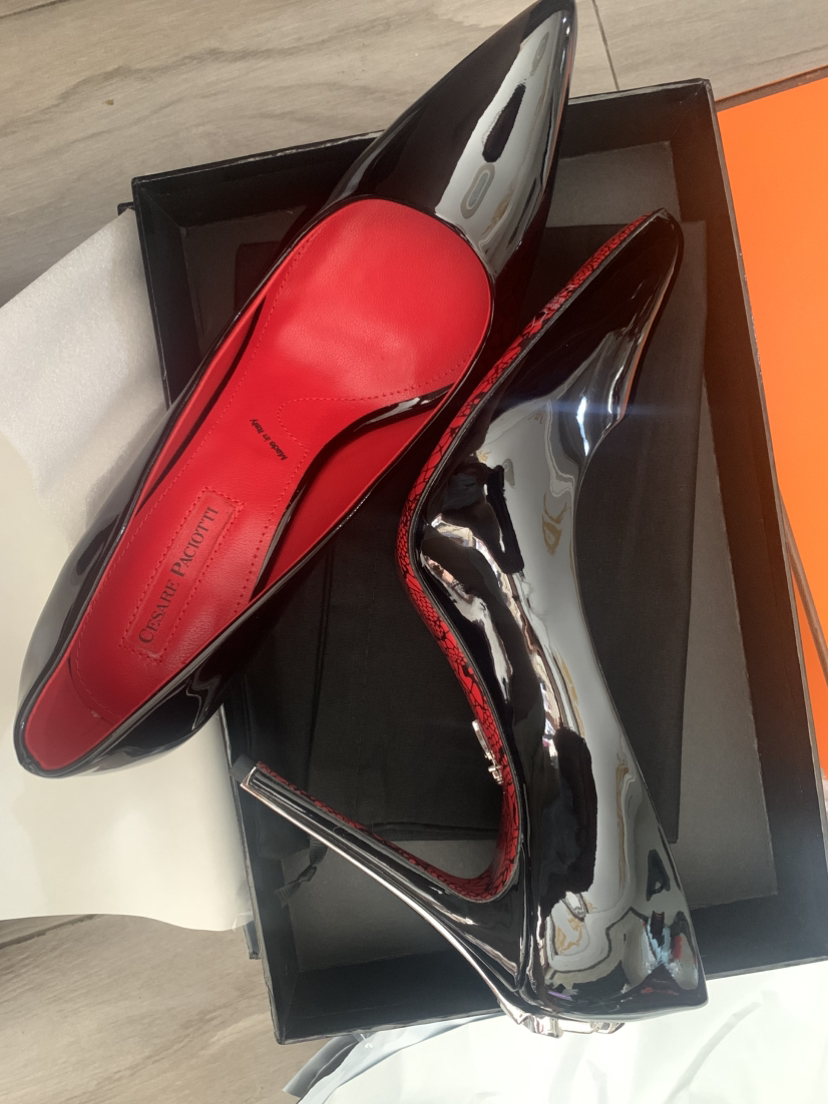 Cesare Paciotti Lady Blade Gold Leather Black Heel